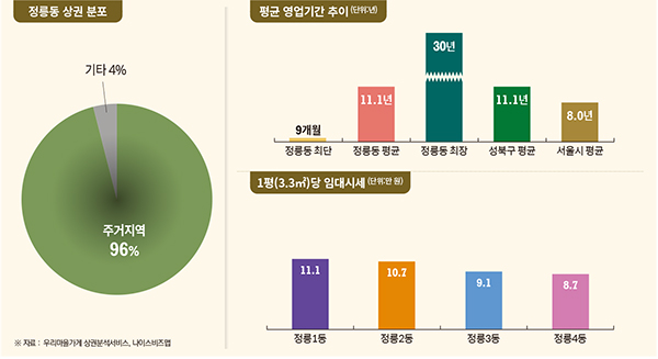 차이가 나는 이유로는 정릉1·2동은 성북구 내 최고 번화가인 길음뉴타운, 돈암동과 인접해 임대료가 비싼 것으로 추측되고, 정릉 3·4동은 북한산으로 둘러싸여 있어 상권이 미비하다 보니 임대료가 낮은 것으로 예상된다.