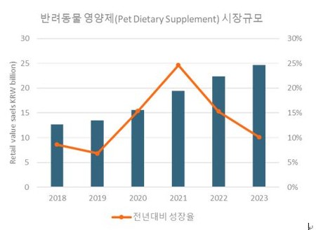 기능성 사료에 대한 관심에 이어 ‘펫 영양제’에 대한 관심도 커지고 있다. 지난해 국내 반려동물 영양제 시장은 전년대비 15% 성장한 224억 원을 기록, 올해 역시 10% 이상 성장해 약 250억 원의 시장 규모를 형성할 것으로 예상되고 있다.