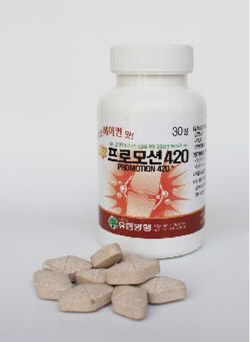 유한양행 동물약품사업부 관계자는 “‘프로모션 420’은 타사 어느 제품보다 글루 코사민 함량이 높으며, 강력한 항산화제가 통증까지 없애 준다”고 제품에 대한 특징을 설명했다.