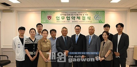 충북대학교 수의과대학(학장 현상환)이 ㈜제트바이오텍(대표 이석제)과 반려동물 질병 진단 시스템 구축을 위한 업무협약을 체결했다.