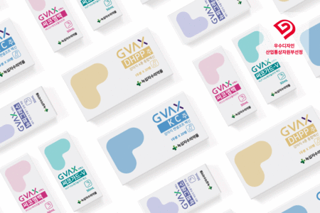 새로운 CI의 일부 형태를 활용한 ‘지백스(GVAX) 백신 패키지’는 제품별 색상을 구분해 사용자의 편리성을 높였으며, 백신의 전문성과 브랜드 정체성도 확립했다.