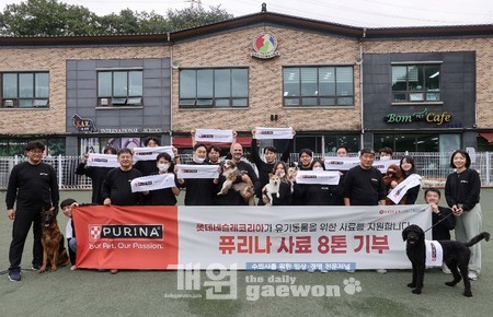 네슬레퓨리나가 한국유기동물복지협회에 총 8톤 이상의 사료와 간식을 전달하고 임직원 봉사활동을 통해 선한 영향력 펼치기에 나섰다.