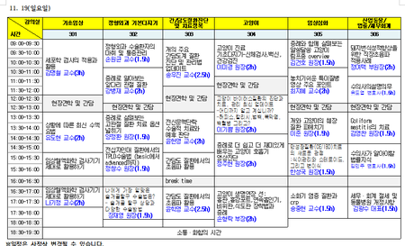 306강의실에서는 산업동물·법률·세무회계 주제의 강의가 진행될 예정이다.