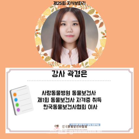 한국동물보건사협회(회장 김수연, 이하 동보협)의 ‘제26회 지식보따리’ 기초반 웨비나가 10월 20일(금)~27일(금) 인벳츠(invest.net)에서 진행된다.