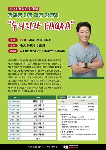 접수는 데일리개원 홈페이지에서 가능하며, 등록 시 궁금한 질문을 남기면 강의 때 답변해 줄 예정이다.