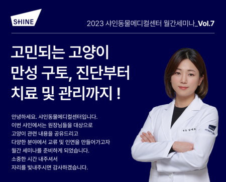 샤인동물메디컬센터가 10월 ‘월간 세미나’를 10월 26일(목) 오후 8시부터 10시까지 송파구에 위치한 부와지식의배움터에서 개최한다.