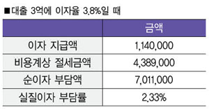 3%이다. 이것은 세금효과로 인하여 명목상 이자율 3.8% 보다 1.5%가 낮게 부담하고 있는 것이다.