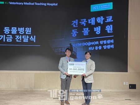 이날 전달한 발전기금은 건국대 동물병원 신축을 위해 쓰일 예정이다.