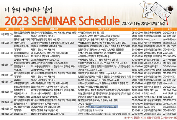 [세미나 캘린더] 2023년 11월 28일~2023년 12월 16일