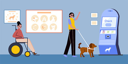 장애인 차별법금지법에 따르면, 우선 휠체어 접근이 가능하도록 키오스크 주변 공간이 확보돼 있어야 하며, 장애인 사용 시 불편하지 않도록 음성인식이 가능하도록 모든 시각적 정보의 음성화와 색상 식별능력 보완, 이어폰 연결 기능 등 장애인을 위한 기능 탑재가 필수이다.