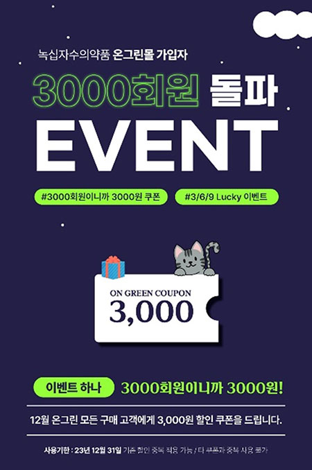 녹십자수의약품은 이를 기념해 12월 한 달간 모든 구매 고객에게 3,000원 할인 쿠폰을 증정하고, 12월 온그린 쇼핑몰 전체 누적 매출 △3천만 원 △6천만 원 △9천만 원 구간에 구매하는 고객에게는 ‘커스터마이징 스크럽’을 증정하는 이벤트를 진행한다.