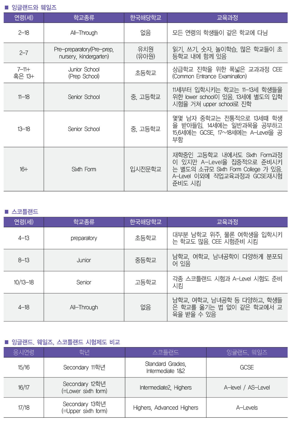 3. 잉글랜드. 웨일즈, 스코틀랜드 시험제도 비교