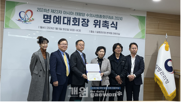 ‘제23차 아시아태평양수의사회 총회(FAVA Congress 2024)’가 오는 10월 25일(수)부터 27일(금)까지 3일간 대전컨벤션센터 일대에서 개최될 예정인 가운데 지난 1월 9일 충북 청주 질병관리청에서 ‘FAVA 2024 질병관리청장 명예대회장 위촉식’이 진행됐다.