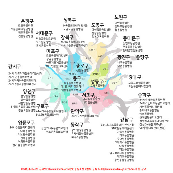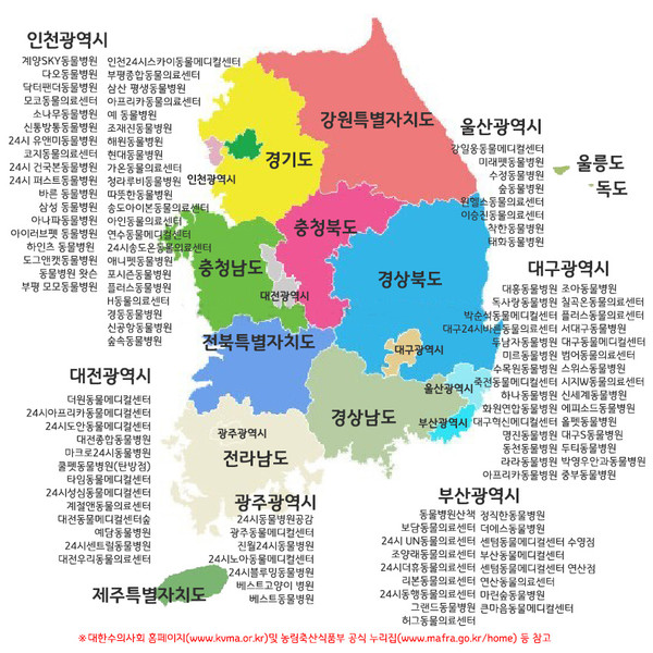 대한수의사회(회장 허주형)가 농림축산식품부(반려산업동물의료팀)의 협조 요청에 따라 각 시․도지부를 통해 설 연휴(2.9.금~2.12.월) 기간 동안 진료하는 동물병원을 조사, 발표했다(전국 450개소). 동물병원 리스트는 대한수의사회 홈페이지(www.kvma.or.kr)및 농림축산식품부 공식 누리집(www.mafra.go.kr/home) 참고하면 된다. <편집자주>