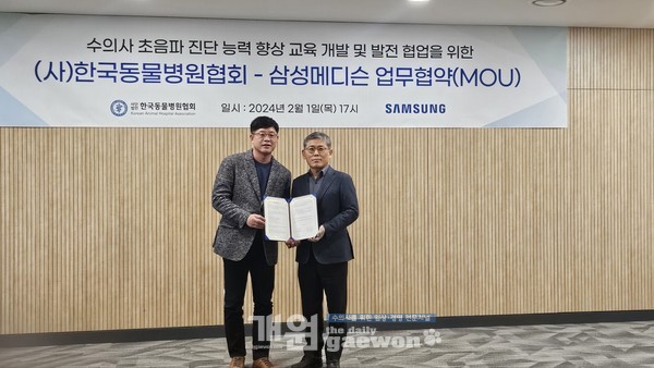특히 카하의 수의계 대표성과 수의학 전문성에 삼성메디슨의 초음파 진단기기 전문성 및 동물전담 조직을 활용해 △동물용 의료기기를 활용한 수의사 교육 프로그램 개발 △동물용 초음파 표준 진단 프로토콜 정립 △동물 전용 AI 진단 보조기능 개발에 상호 협력키로 합의, 삼성메디슨은 동물병원 시장의 적극적인 지원을 약속했다.