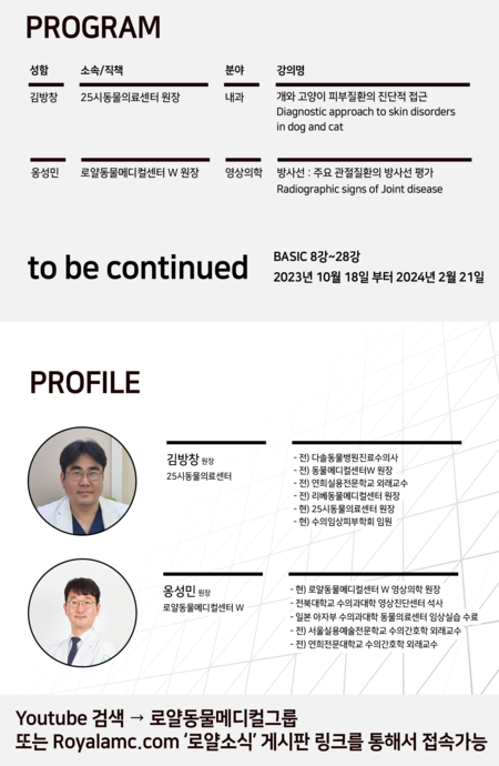 한편 로얄동물메디컬센터는 2월 21일(수)까지 ‘BASIC Course’ 강의를 이어간다.