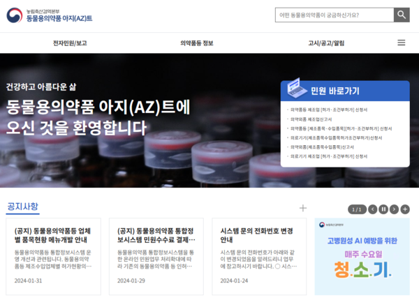 농림축산검역본부가 동물용의약품 통합정보시스템 ‘아지(AZ)트(https://medi.qia.go.kr)’ 운영에 나섰다.