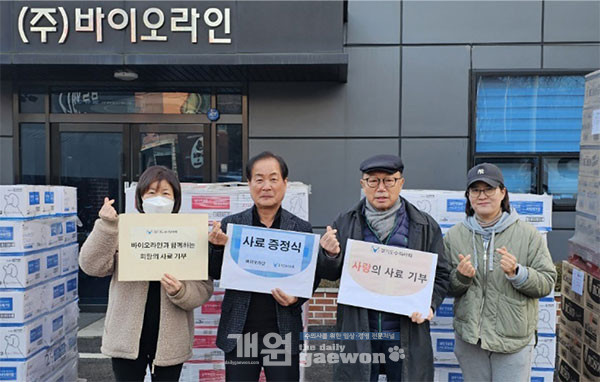 ㈜바이오라인(대표 권동일)이 지난 1월 26~29일 4일에 걸쳐 지역 보호단체에 사료 2톤을 기부했다.