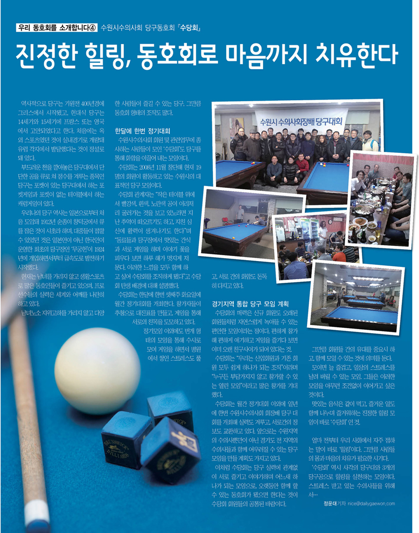 [우리 동호회를 소개합니다④] 수원시수의사회 당구동호회 『수당회』