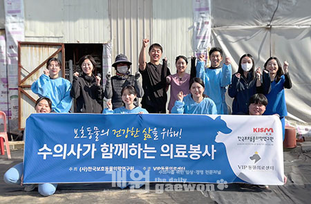 VIP동물의료센터(대표원장 최이돈) 주요 의료진 및 임직원이 경기도 양주에 위치한 하하호호 양주쉼터(소장 신정숙)를 방문해 의료봉사를 진행했다.