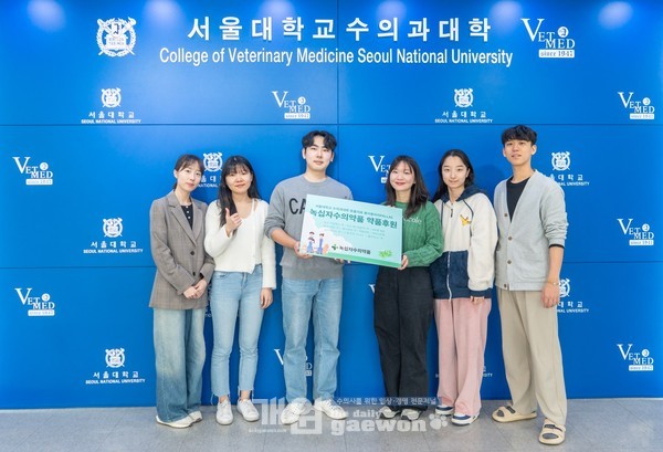 녹십자수의약품(대표 나승식)이 지난 26일 서울대학교 수의과대학 임상봉사 동아리 ‘팔라스’의 해외 의료봉사 지원을 위해 동물용의약품을 후원했다.
