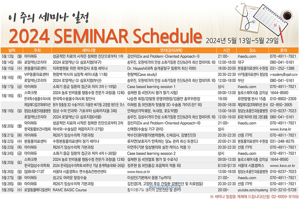 [세미나 캘린더] 2024년 5월 13일~2024년 5월 29일
