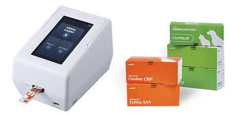 ‘ABSOL Carry VET’은 형광면역 측정법과 미세유체기술(Microfluidic Technology)을 이용해 정확한 정량 분석이 가능한 제품으로 동일한 검사법과 동일한 혈액량(CRP/SAA 제외 5㎕)으로 쉽고 간편하게 검사가 가능한 것이 특징이다.