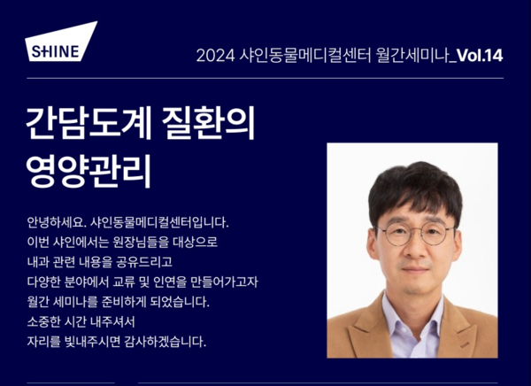 샤인동물메디컬센터 측은 “다양한 분야의 교류를 위해 매월 다른 주제의 임상 강의를 진행하고 있으니 많은 관심과 참여 바란다”고 전했다.