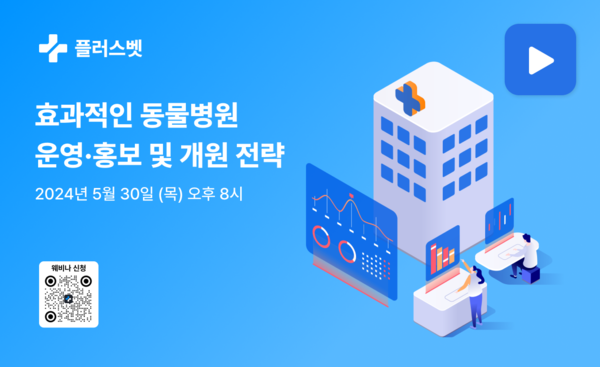 플러스벳(대표 김평섭)이 오는 5월 30일(목) 오후 8시 동물병원 개원을 앞둔 수의사를 대상으로 ‘효과적인 동물병원 운영·홍보 및 개원 전략’ 웨비나를 개최한다.
