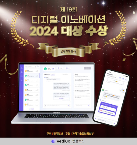 벳플럭스(대표 윤상우)가 제 19회 ‘2024 디지털 이노베이션 대상’에서 인공지능 분야 대상을 수상했다.