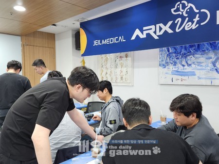 강의는 충남대 수의과대학 정형·신경외과 분야 이해범 교수와 정재민 교수를 비롯해 조청운(커스터메디) 대표가 연자로 나서 총 5개의 이론 강의와 4개의 실습을 진행했다.