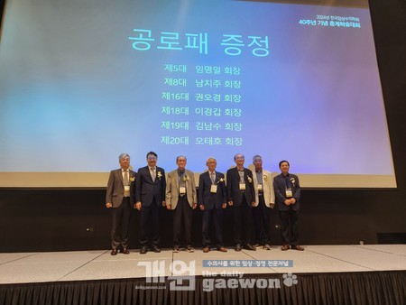 특히 기념식 자리를 빛낸 5대 임영일 회장, 8대 남치주 회장, 16대 권오경 회장, 18대 이경갑 회장, 19대 김남수 회장, 20대 오태호 회장 등 역대 회장에게 공로패를 증정해 그동안의 노고를 치하했다. 또한 이번 학술대회 부스에 참여한 40여개 후원 업체들에 대한 감사패를 수여하고, 이어 서울대 음대 성악과의 축하공연이 이어져 축하 분위기를 더했다.