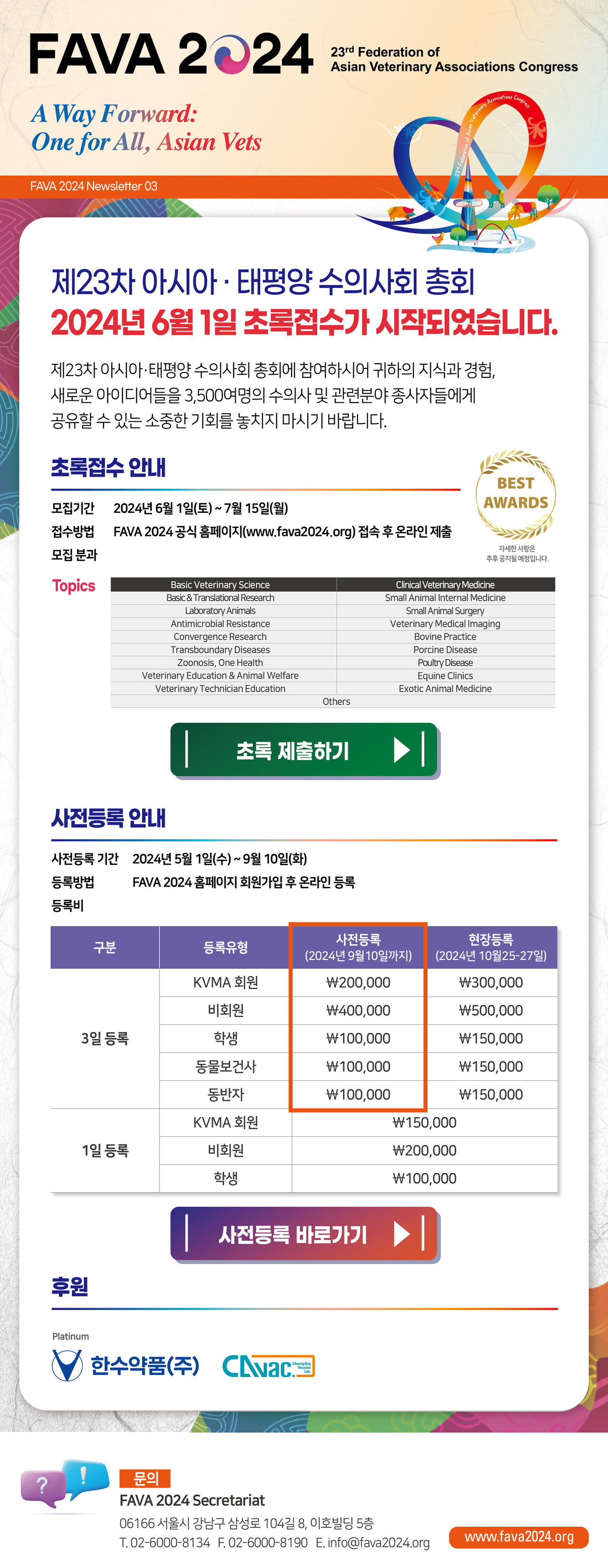 초록 접수는 FAVA 2024 공식 홈페이지(www.fava2024.org) 접속 후 온라인 제출하면 된다.