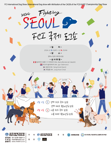 한국애견연맹(총재 송하경)이 오는 6월 15일(토)부터 16(일)일까지 서초 aT센터에서 ‘2024 서울 FCI 국제 도그쇼 및 KKF 챔피언십 도그쇼’를 개최한다.