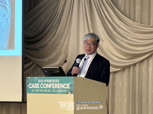다수의 SCI(E) 논문을 발표한 김성수(VIP동물의료센터 성북점) 원장은 마지막에 마련된 특별 세션에서 윤학영 교수와 함께 2022년부터 올해까지 VIP동물의료센터 수의사들이 발표한 논문을 소개해 주목을 받았다.