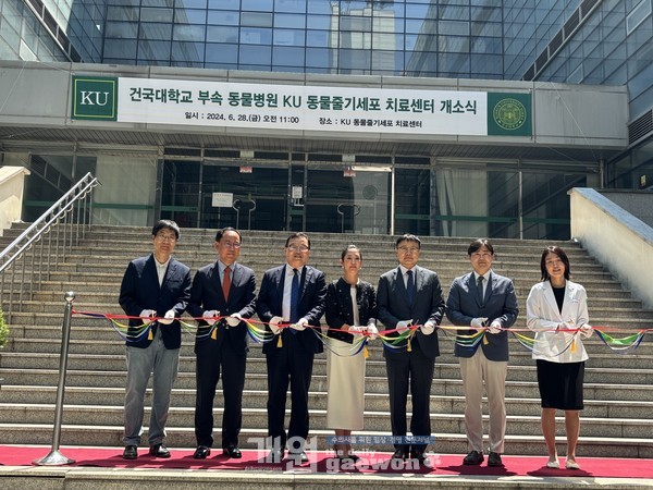 건국대학교동물병원(병원장 윤헌영)이 국내 수의대 동물병원 최초로 동물줄기세포치료센터인 ‘KU동물줄기세포치료센터(센터장 김의진)’를 오픈하고, 지난 6월 28일 개소식을 가졌다.