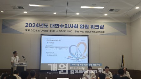 대한수의사회(회장 허주형, 이하 대수회)가 ‘2024년도 임원 워크숍’을 지난 6월 29일 오후 1시 30분 ‘부산수의컨퍼런스’가 열리는 벡스코 현장에서 개최했다.