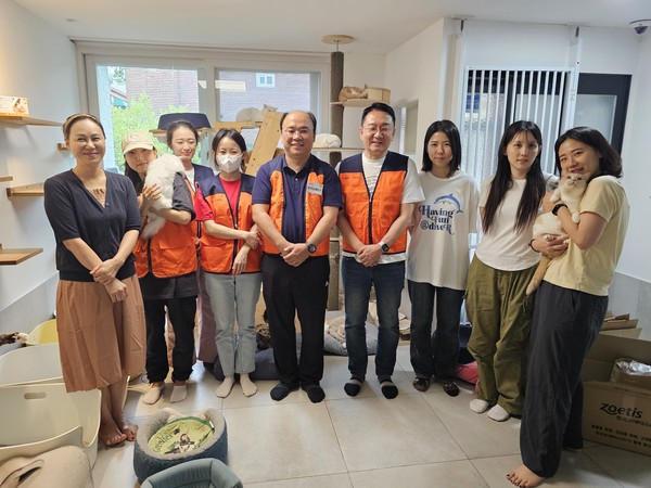 글로벌 동물의약품 전문기업 한국조에티스(대표 박성준)가 지난 7월 28일 유기묘 보호단체 나비야사랑해(대표 유주연), 인천스카이동물메디컬센터(원장 오이세)와 함께 사회공헌활동을 진행했다.