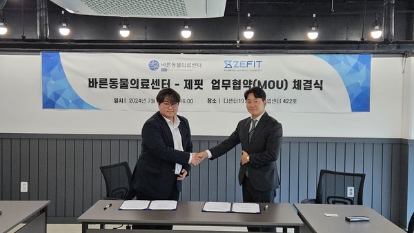대구24시 바른동물의료센터(원장 이정석, 이하 바른동물의료센터)가 지난 7월 30일 제핏(대표 이기백)과 환자 아바타 기반 반려동물 항암제 검사기술 공동연구를 위한 업무협약을 체결하고, 시범 검사 서비스를 진행한다.