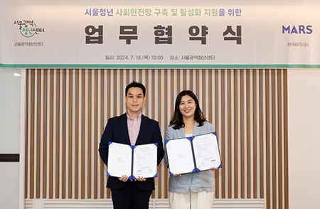 한국마즈(대표 이두호)가 지난 7월 18일 서울광역청년센터와 청년사회안정망 지원 및 활성화를 위한 업무협약을 체결했다.