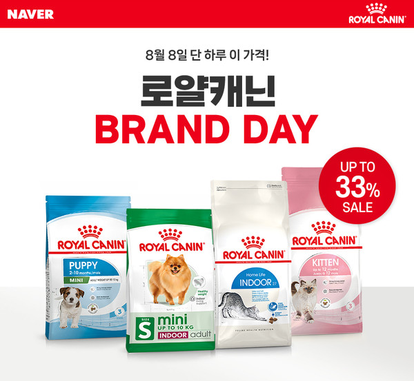 로얄캐닌은 브랜드데이가 진행되는 금일 하루 동안 반려묘와 반려견 성장기 맞춤 영양 사료를 최대 33% 할인된 가격으로 판매하며, 행사 당일 사료를 구매한 선착순 1,000명에게는 소용량 포장된 사료를 추가 혜택으로 증정한다.