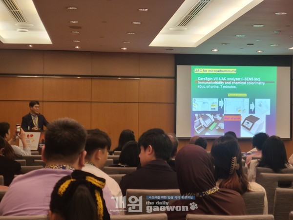 아이센스는 대회 기간 동안 세계 최초의 UAC POCT 분석기 ‘CareSign-V’ 및 UAC 논문 배너 전시를 통해 말레이시아 수의사를 비롯해 싱가포르, 태국, 인도 등 세계 각국의 수의사들로부터 높은 관심을 받았다.