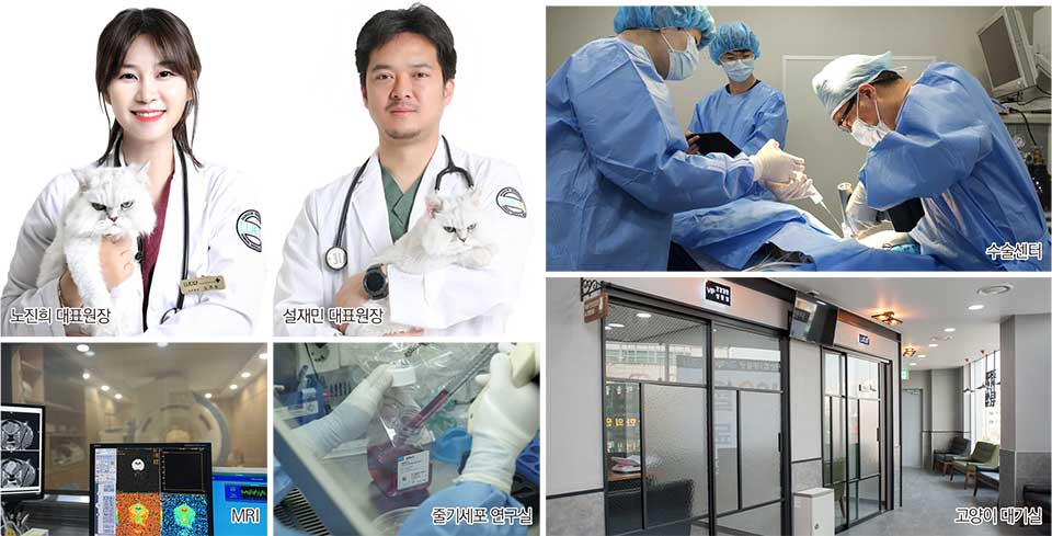 노진희 원장은 노령 고양이 또는 신부전을 앓고 있는 고양이 환자의 수술과 치료를 담당하고 있다. SBS ‘TV 동물농장’에 출연해 자문 수의사로 활동했으며, 「나는 행복한 고양이 집사」, 「고양이 심화학습」 등 2권의 고양이 관련 서적을 출간한 고양이 전문 의료진이다.
