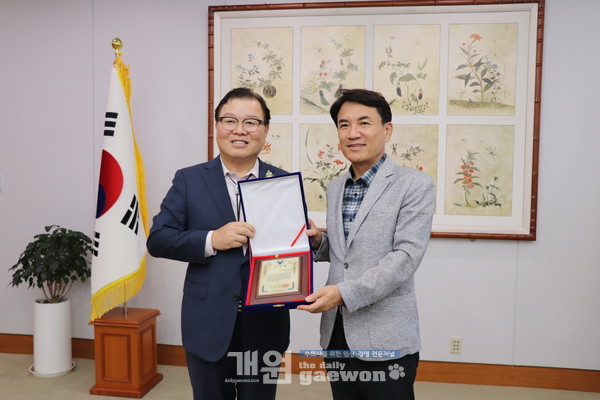이날 간담회에서 대수회는 최근 강원특별자치도의 수의직 6급 채용 등 가축방역체계 발전을 위한 적극적인 노력에 감사를 표하며, 김진태 강원특별자치도지사에게 감사패를 수여했다.