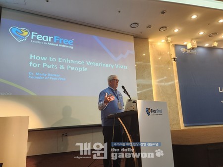 이후 마티 베커가 ‘수의사를 위한 피어프리 교육 현황’을 주제로 강의, “피어프리는 반려동물의 불안감을 낮추기 위해 256명의 전문가들과 프로토콜을 개발했다. 프로토콜은 ‘동물의 눈을 오랫동안 보지 마라’, ‘동물을 테이블이 아닌 바닥에 둬라’ 등의 간단한 동물행동 프로토콜로 반려동물 불안감을 줄이기 위한 다양한 방법들이 피어프리에 존재한다”고 설명했다.