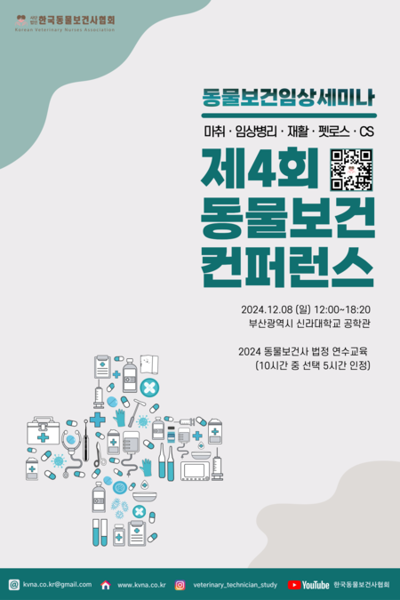 한국동물보건사협회(회장 김수연, 이하 동보협)가 오는 12월 8일(일) ‘제4회 동물보건 컨퍼런스’를 오후 12시부터 6시 20분까지 부산광역시 신라대학교 미래항공융합관 406호에서 개최한다.