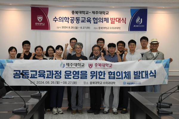 충북대 수의과대학(학장 나기정)와 제주대 수의과대학(학장 윤영민)가 지난 8월 26일~27일 양일에 거쳐 충북대 교수회의실에서 ‘수의학 공동교육 협의체 발대식’을 가졌다.