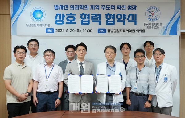 경상국립대 동물의료원(병원장 황태성)과 동남권원자력의학원(의학원장 이창훈)이 방사선 의과학 분야 공동 연구 및 기술협력을 위한 업무협약을 체결했다.