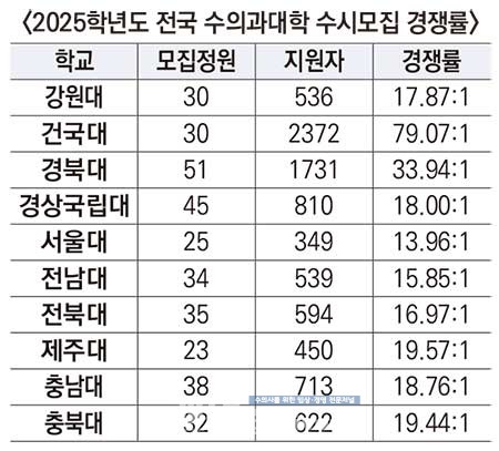 2025학년도 수시모집 원서 접수가 지난 9월 13일 마감된 가운데 전국 10개 수의과대학의 수시 경쟁률이 25.4대 1을 기록, 343명 모집에 총 8,716명이 지원했다.