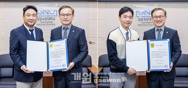 지난 10월 31일 경상국립대학교 가좌캠퍼스 본관 3층 접견실에서 열린 발전기금 전달식에서 양하영 원장은 2천만 원을, 배준우 원장은 1천만 원을 각각 기부했다.